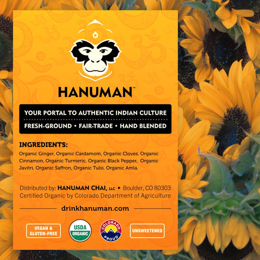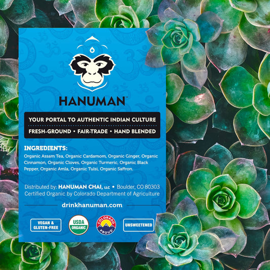 Discover our curated selection of Ayurvedic blends tailored for every moment. From the vigor of our Energizing blend to the tranquility of our Calming blend, Hanuman Chai brings you USDA Organic and ethically sourced ingredients for a pure and balanced chai experience.